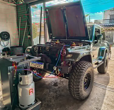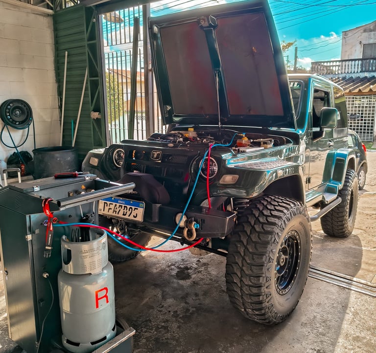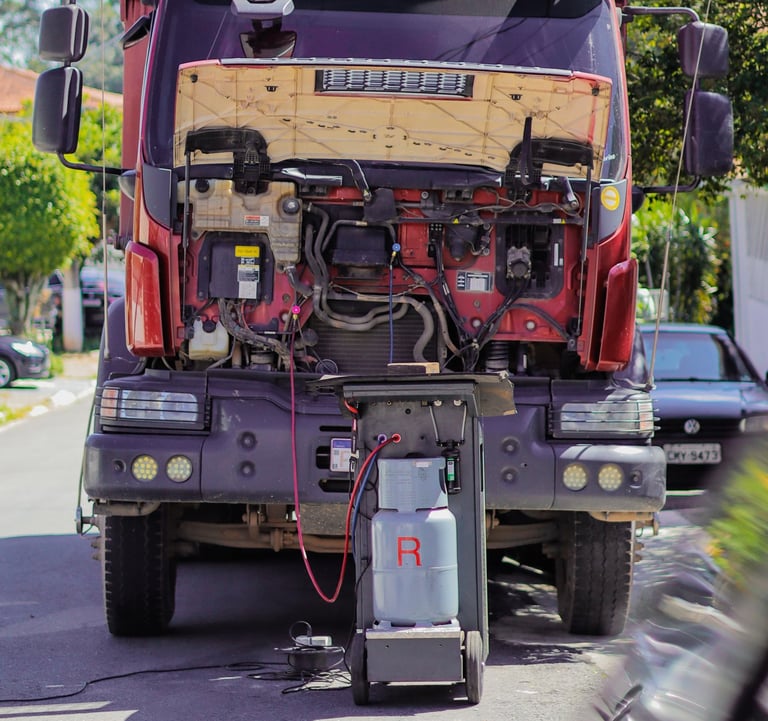 Reparo e solda em tubulações do sistema de ar condicionado.